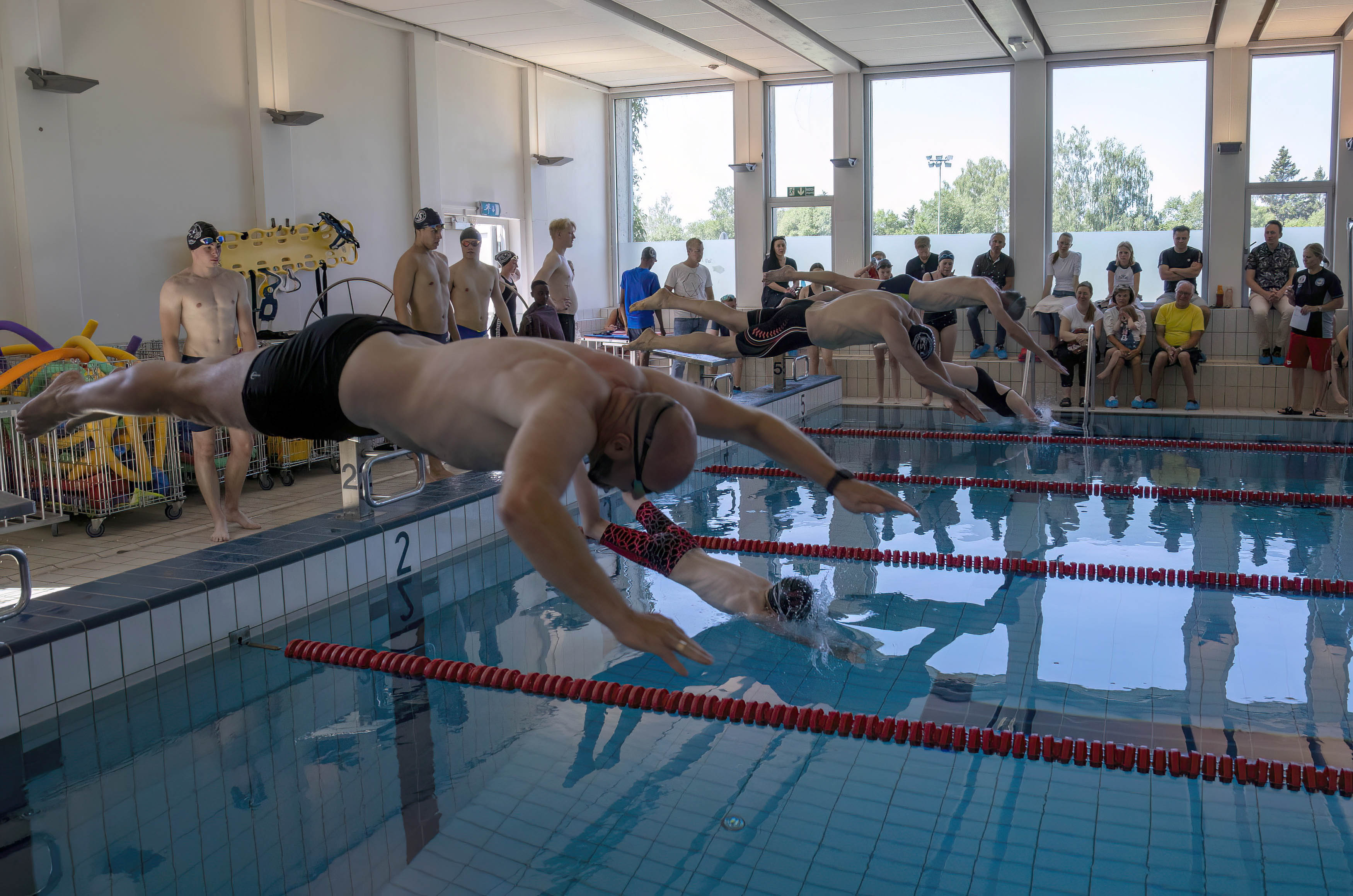 - Vi ønsker jo å være en klubb for alle, og med tilbud nærmest fra vugge til grav. Våre aktiviteter er varierte, og spenner fra svømmekursene, via partiene for barn og ungdom mellom 7 og 19 år til våre tilbud for voksne damer og gamle gubber, sier Halvorsen og humrer - før han gjør seg klar for 50 meter fri, ca. 60 år etter at han selv debuterte som svømmer.
